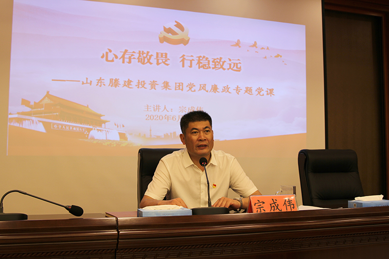 滕發集團副總經理、滕投集團董事長宗成偉以《心存敬畏 行穩致遠》為題為全體干部職工講授了黨風廉政建設專題黨課。