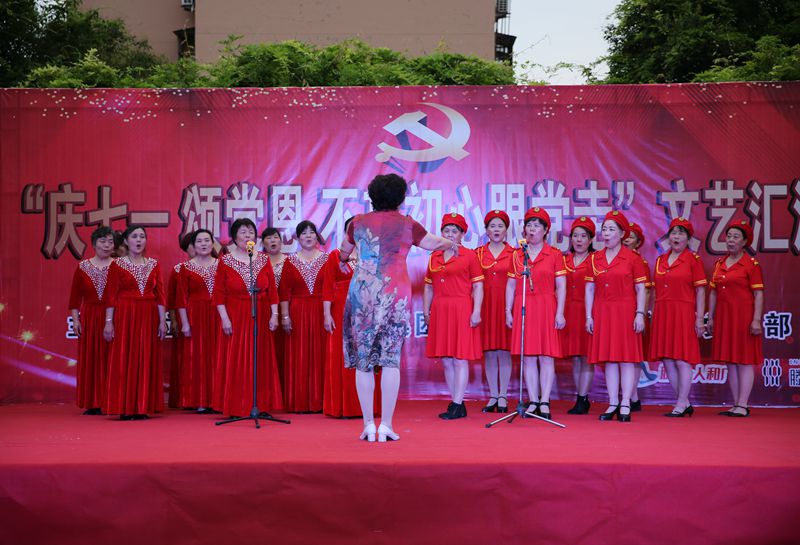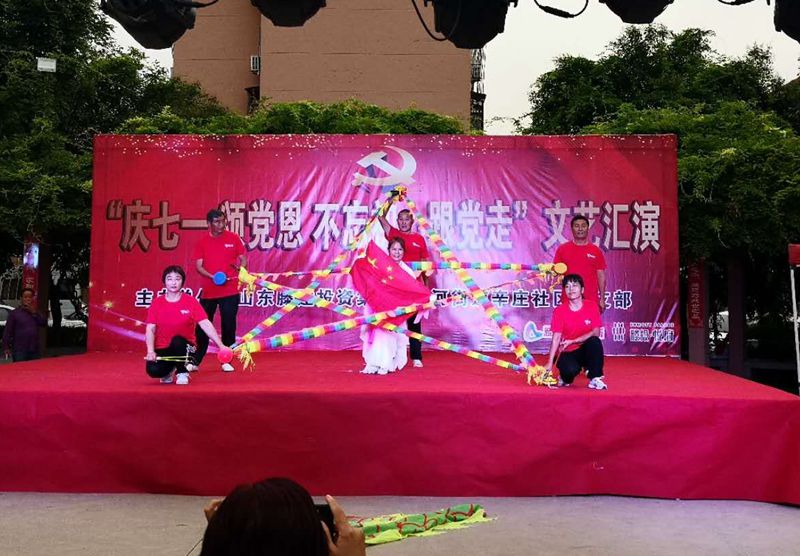 當(dāng)天,滕投集團(tuán)和辛莊社區(qū)聯(lián)合為社區(qū)居民奉獻(xiàn)了一場精彩紛呈的“慶七一 頌黨恩 不忘初心跟黨走”文藝匯演。演出活動在聲勢浩蕩的“軍鼓”表演中拉開帷幕,省級獲獎節(jié)目《空竹表演》、舞蹈《祝福祖國》、小合唱《紅梅贊》、竹笛獨奏《揚鞭催馬運糧忙》等節(jié)目將活動持續(xù)推向高潮。