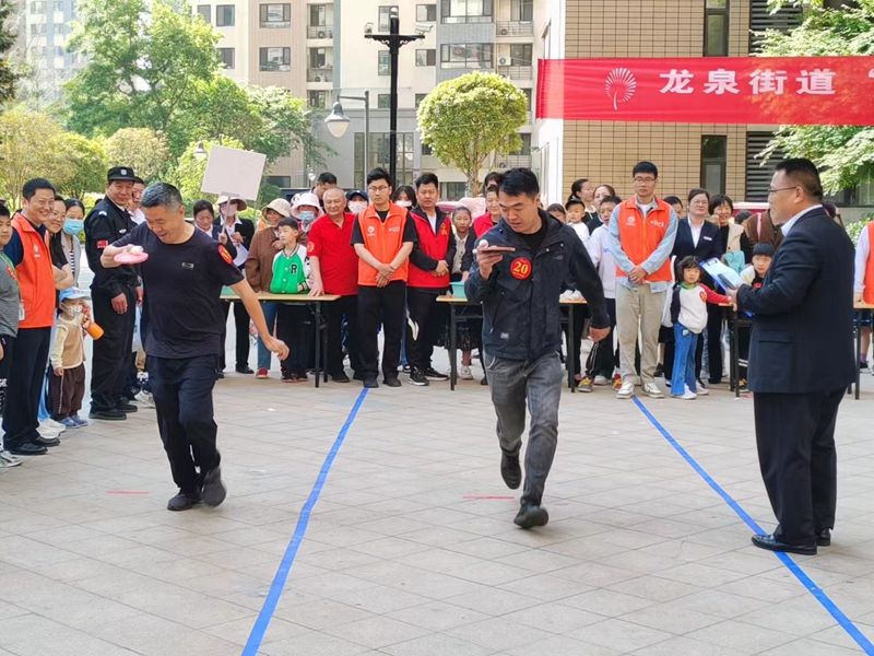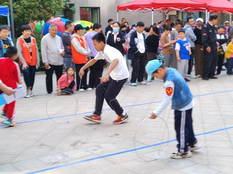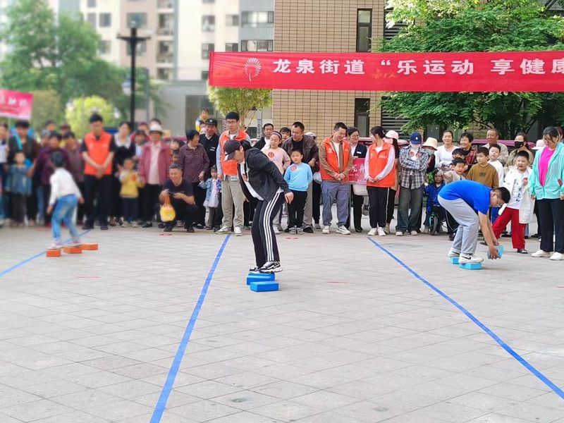 活動現場,居民們積極參與,熱情高漲。摸石過河、滾鐵環、踢毽子、趣味保齡球、拔河等傳統運動項目不僅考驗了參賽者的身體協調性和團隊協作能力,更激發了大家童年的回憶。同時,現場還設置了旱地龍舟、運轉乾坤等親子游戲和才藝展示環節,為家庭成員提供了共同參與的機會,增進了親子關系。